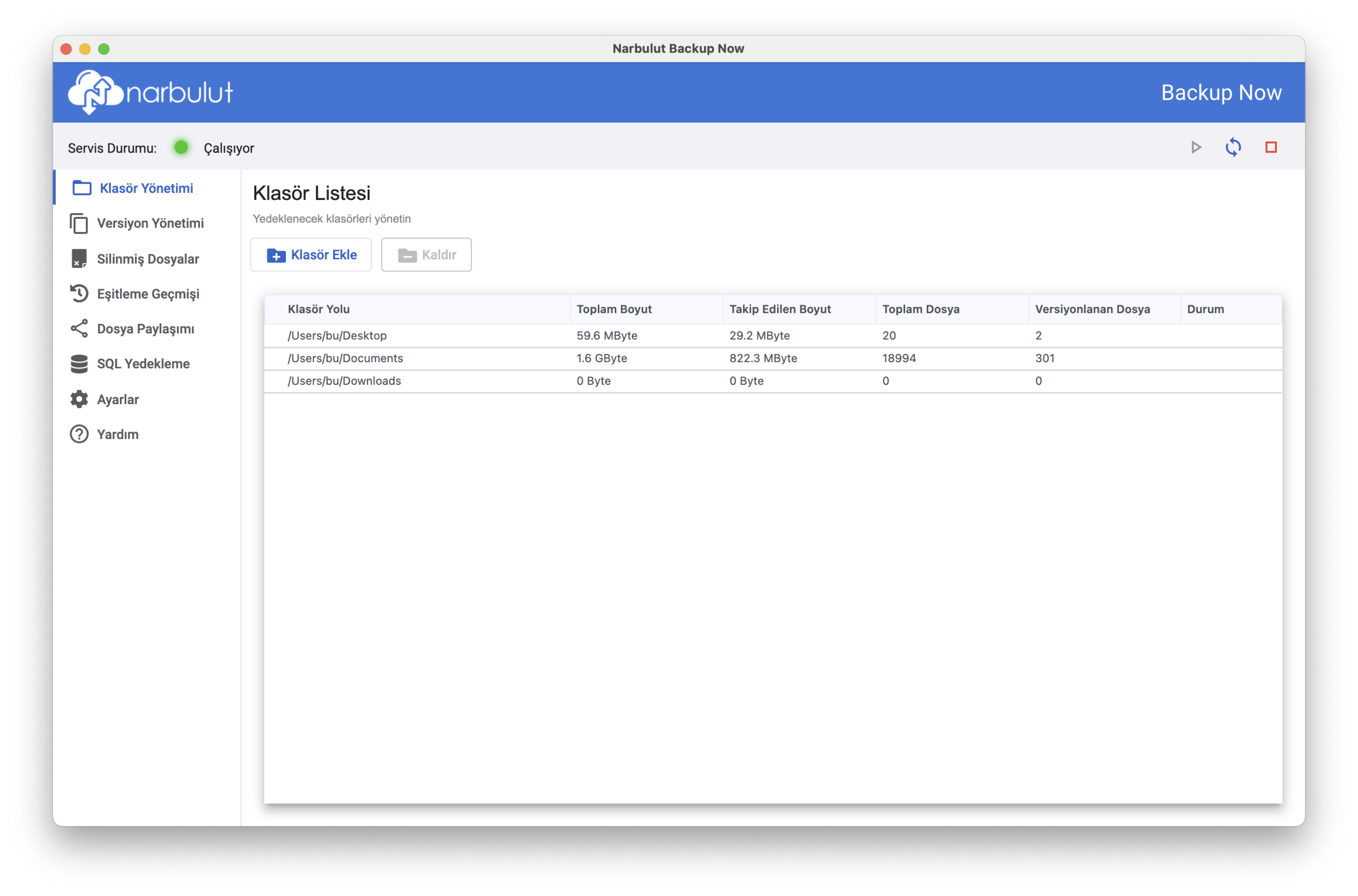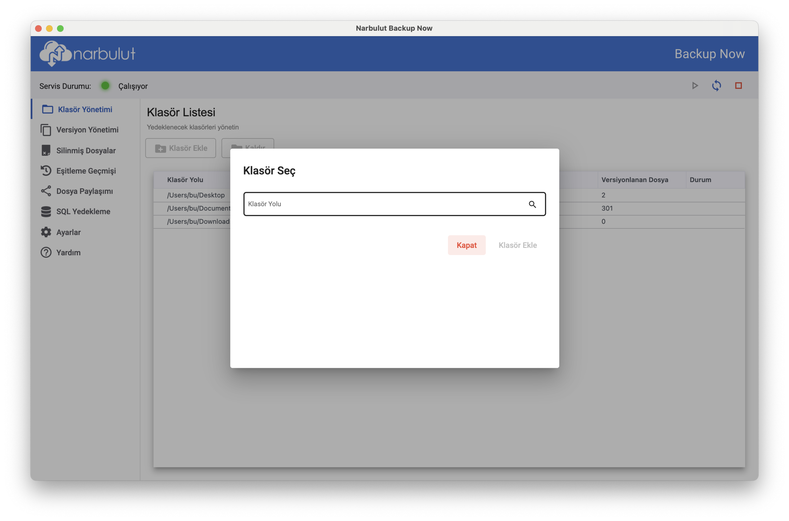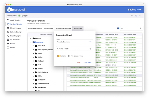 Photos, videos, presentations, documents and other important files... You can safely store all your data in Narbulut. Backup Now instantly backs up your files and versions the changed ones.