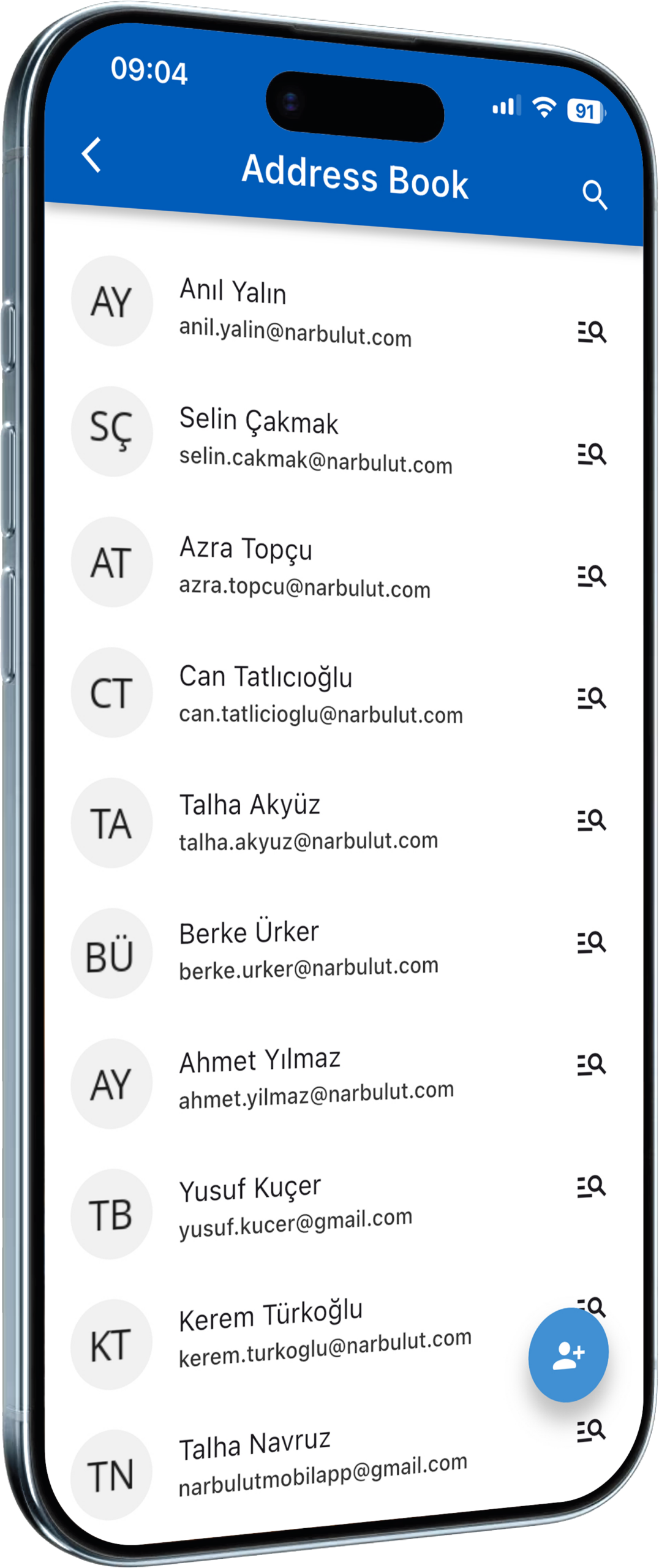 The Address Book feature of the Narbulut mobile application allows you to invite unlimited guest users to your system without requiring a license. You can securely share files with external stakeholders, clients, or business partners and create shared workspaces. Expand your team, strengthen your collaboration.