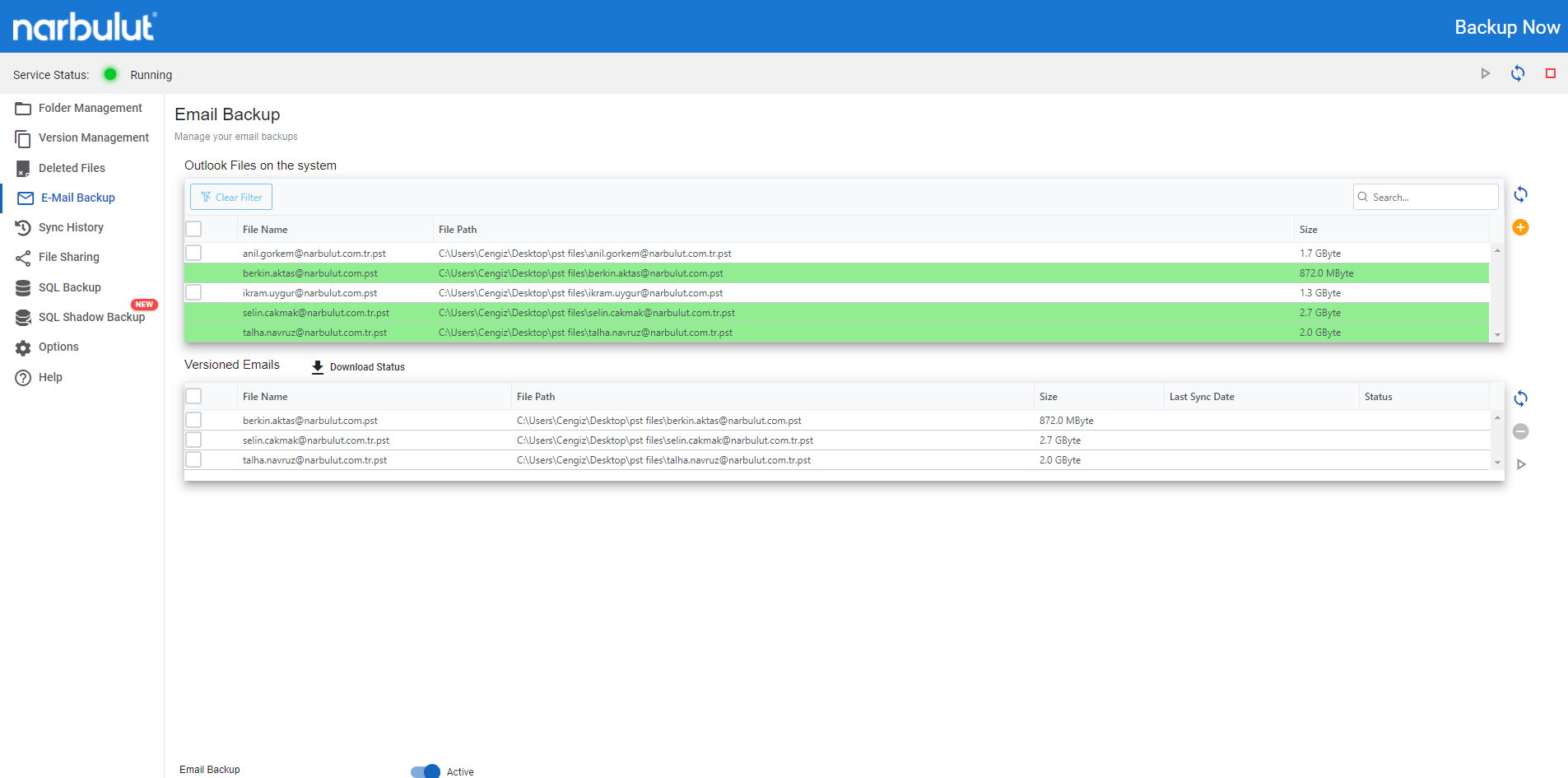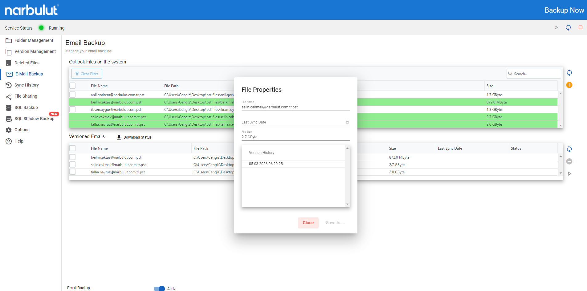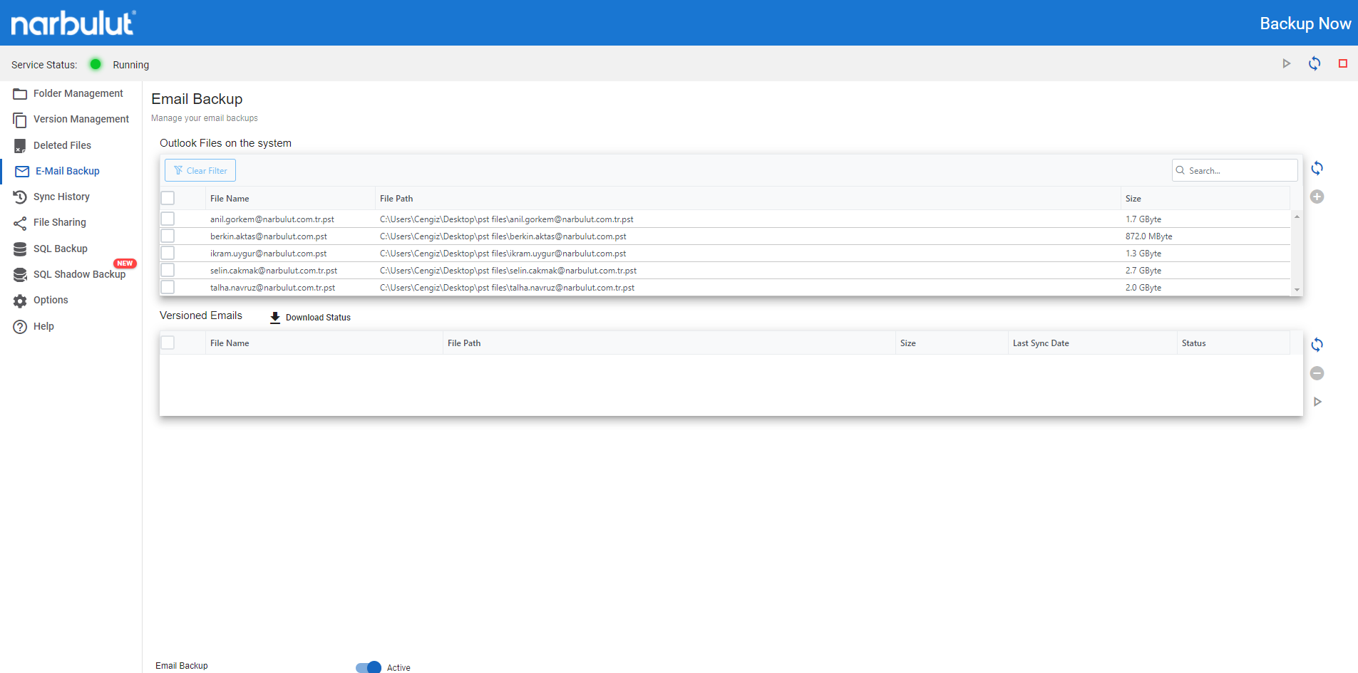 Back up your e-mail database files with Narbulut Backup Now. Recover easily and quickly when you lose data.