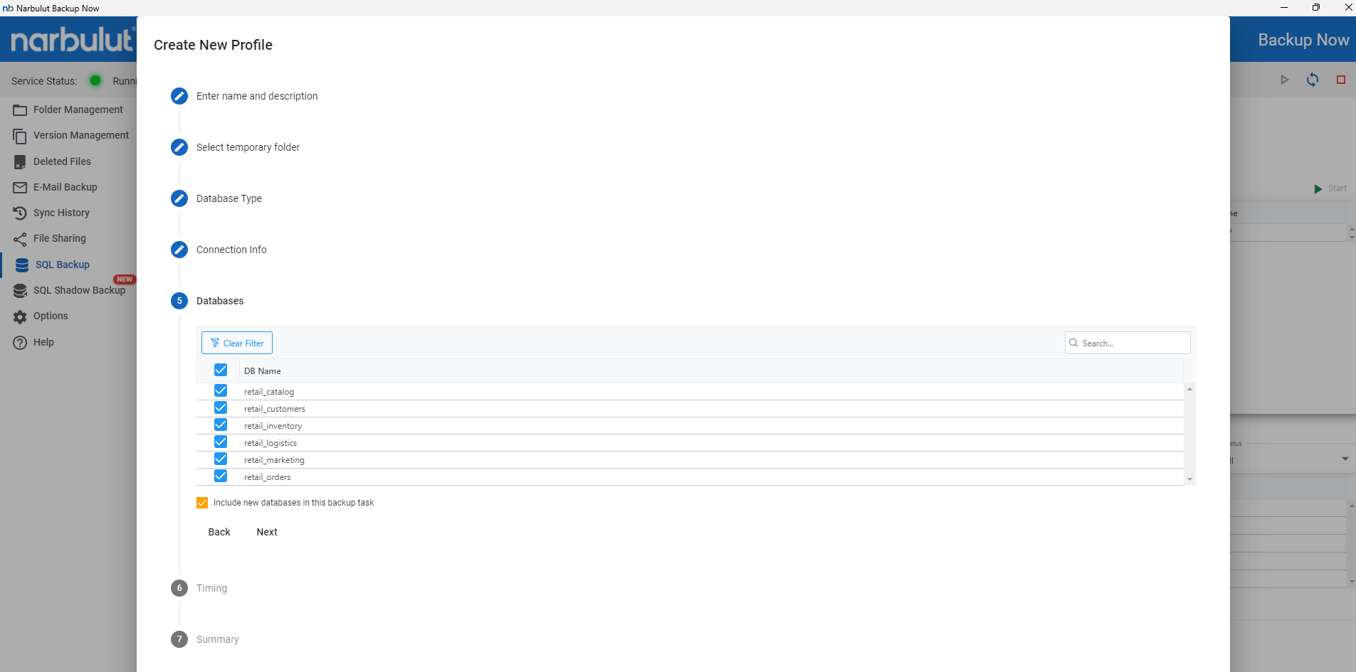 Narbulut Backup Now stores your deleted database files for 60 days. During this period, you can restore your deleted databases with all their versions.