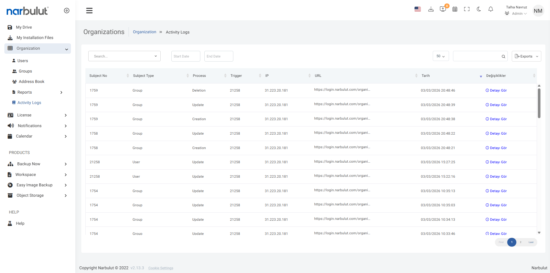 Add NAS, SAN, disks and Narbulut storage areas and back up all infrastructures.