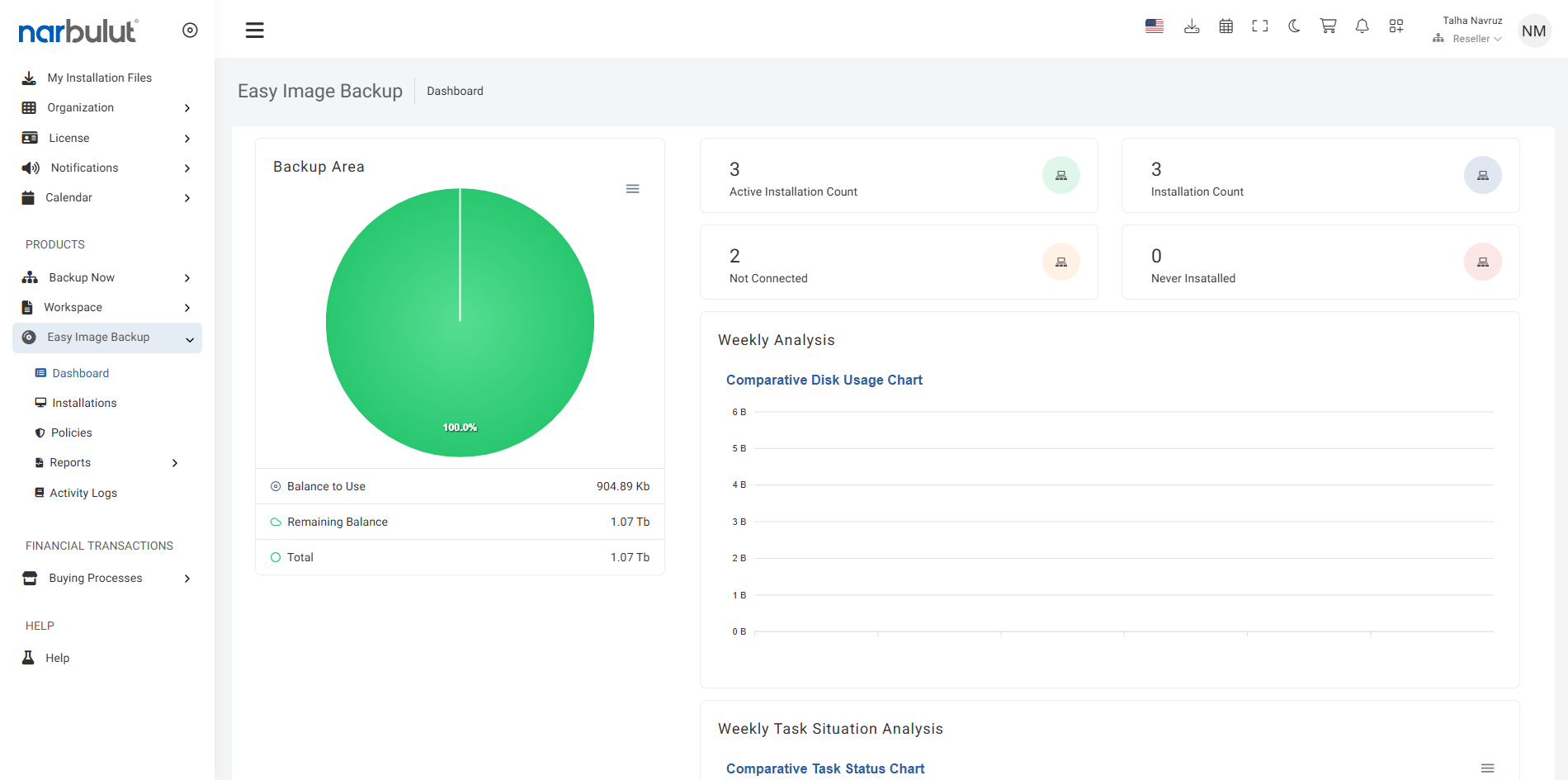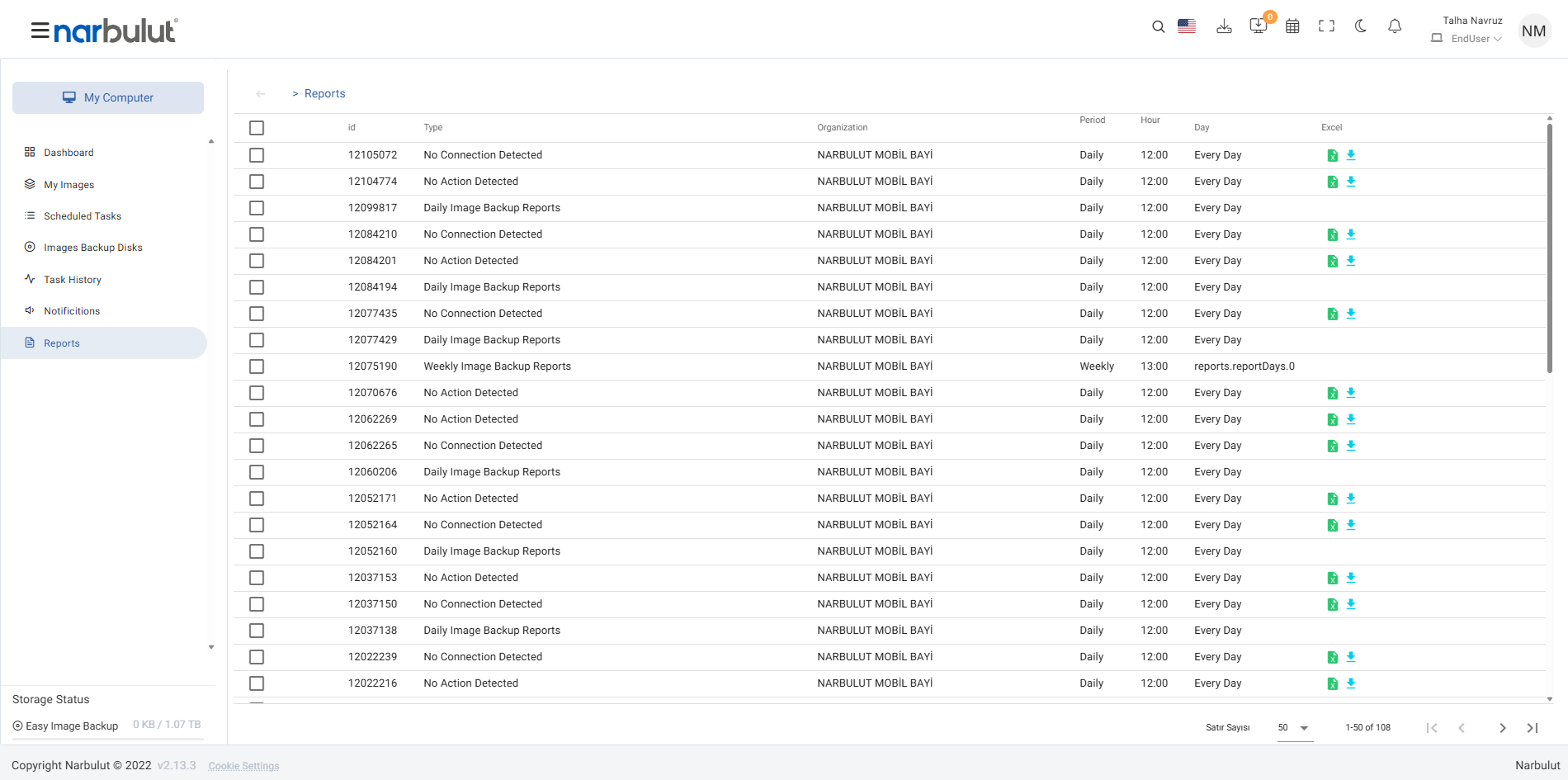 Control your backup processes remotely and in real time via the central panel with Easy Image Backup. Speed up your management processes by viewing the backup status, storage space used and task planning of each device in a single interface. Access the system from anywhere with an internet connection and manage your operations and users remotely and securely.