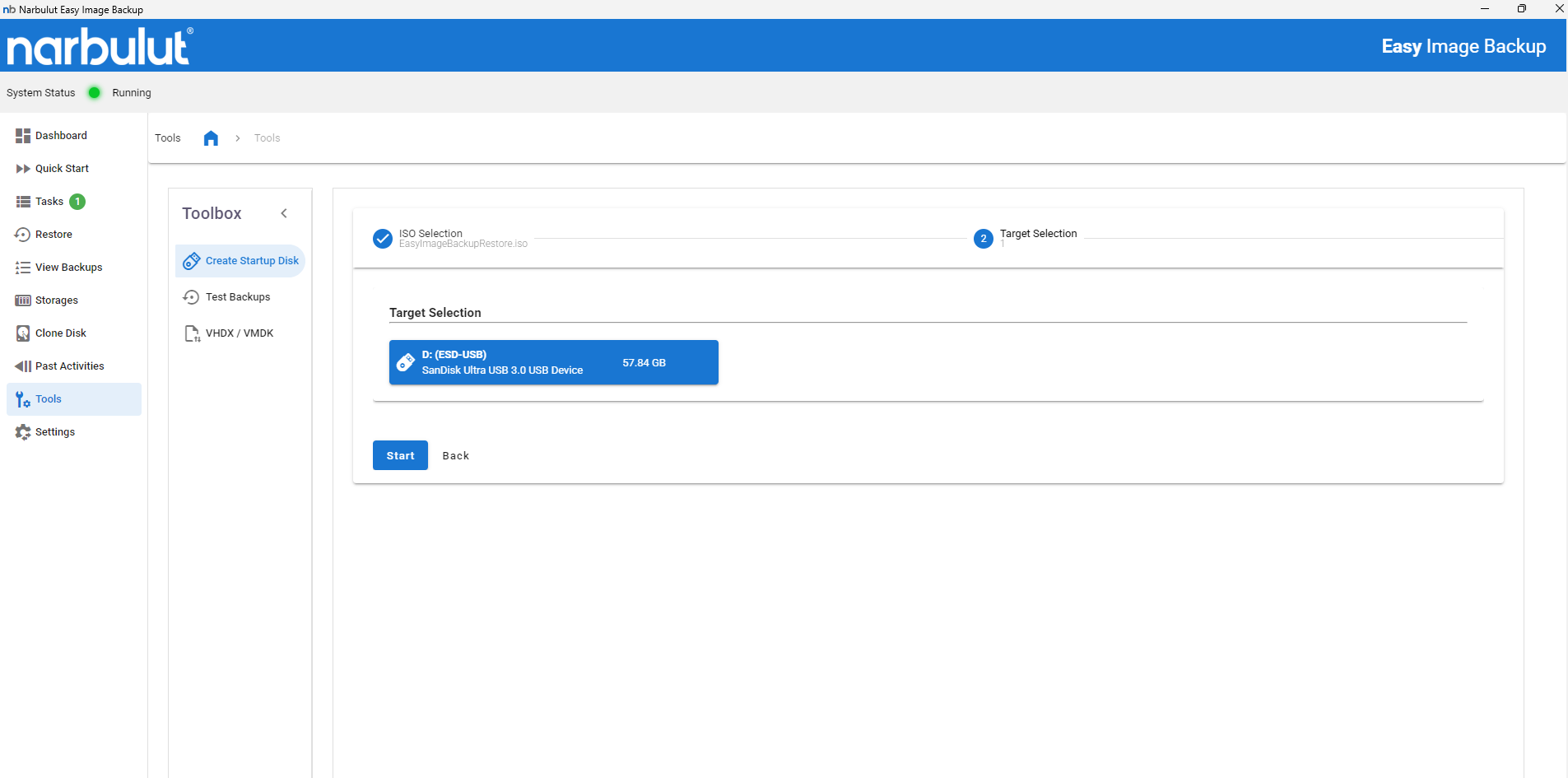 Narbulut Easy Image Backup's startup disk creation tool (LiveOS) turns your USB memory into a startup disk. You can restore your system or transfer data from your computer to other devices using this USB memory.