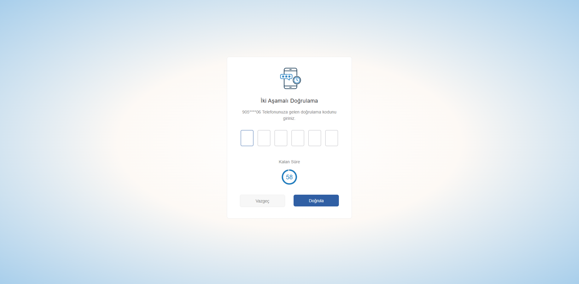 Mesaj yoluyla hesabınıza erişmek için girmeniz gereken dört ila altı haneli bir doğrulama kodu alırsınız. Telefonunuza gelen bu kodu girerek kimliğinizi onaylarsınız.