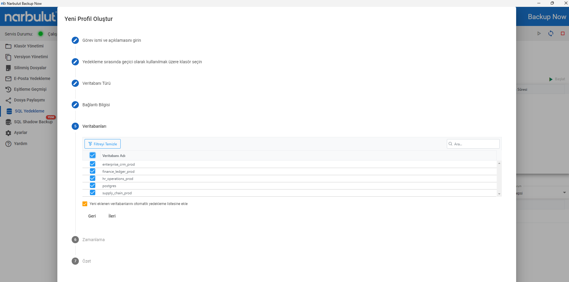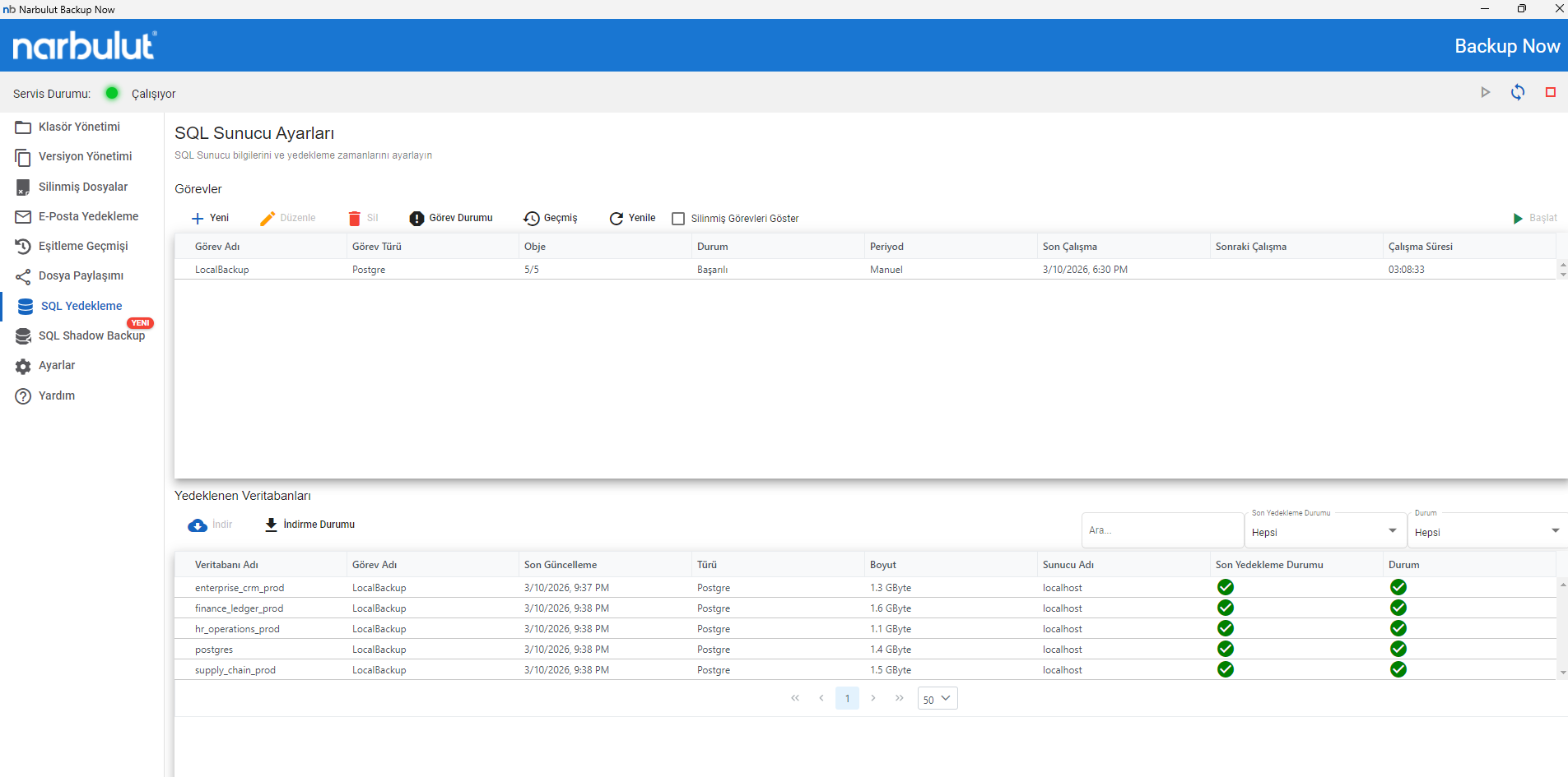 - Seçtiğiniz veritabanlarını Narbulut Backup Now ile kurtarın.