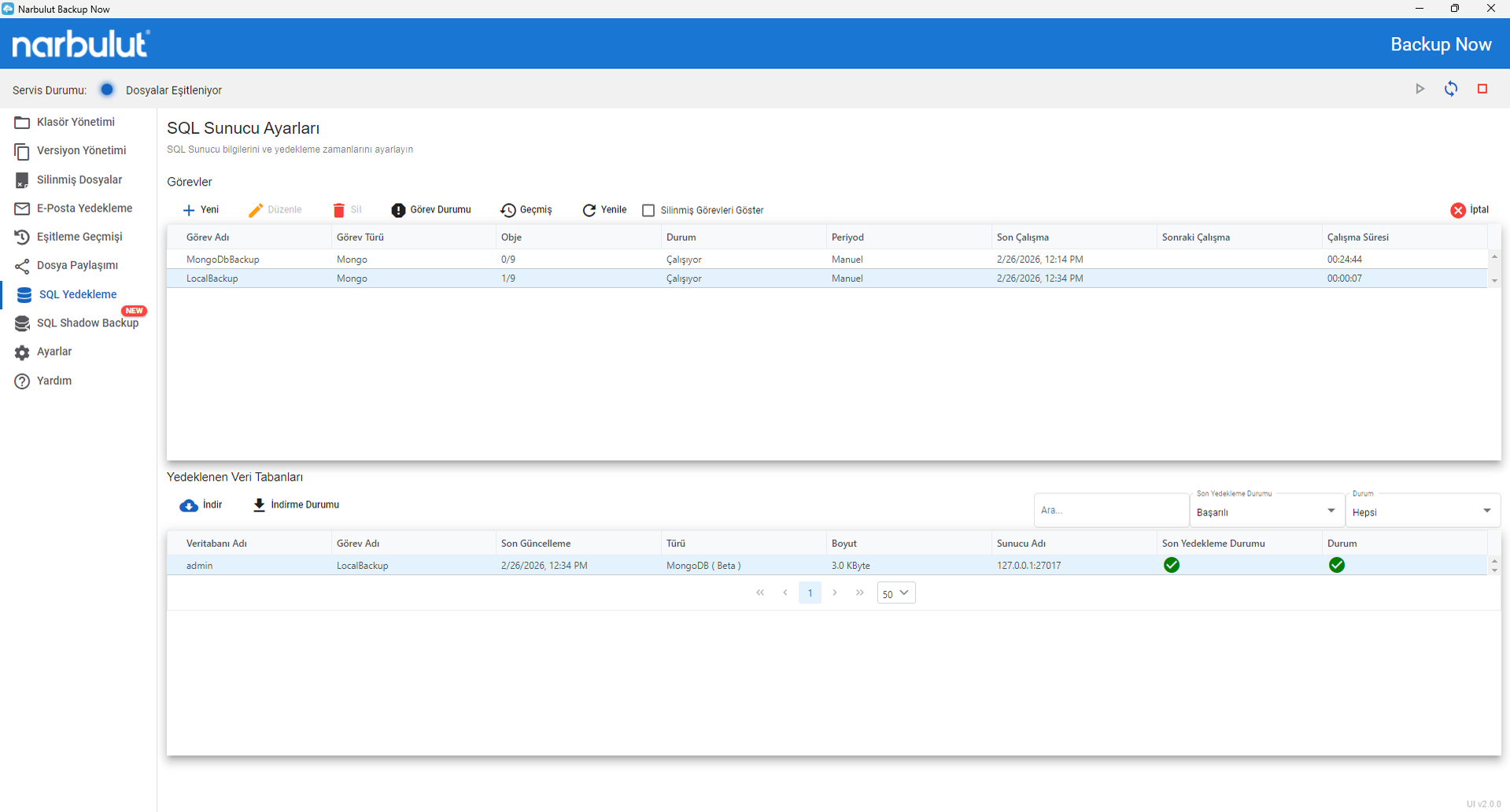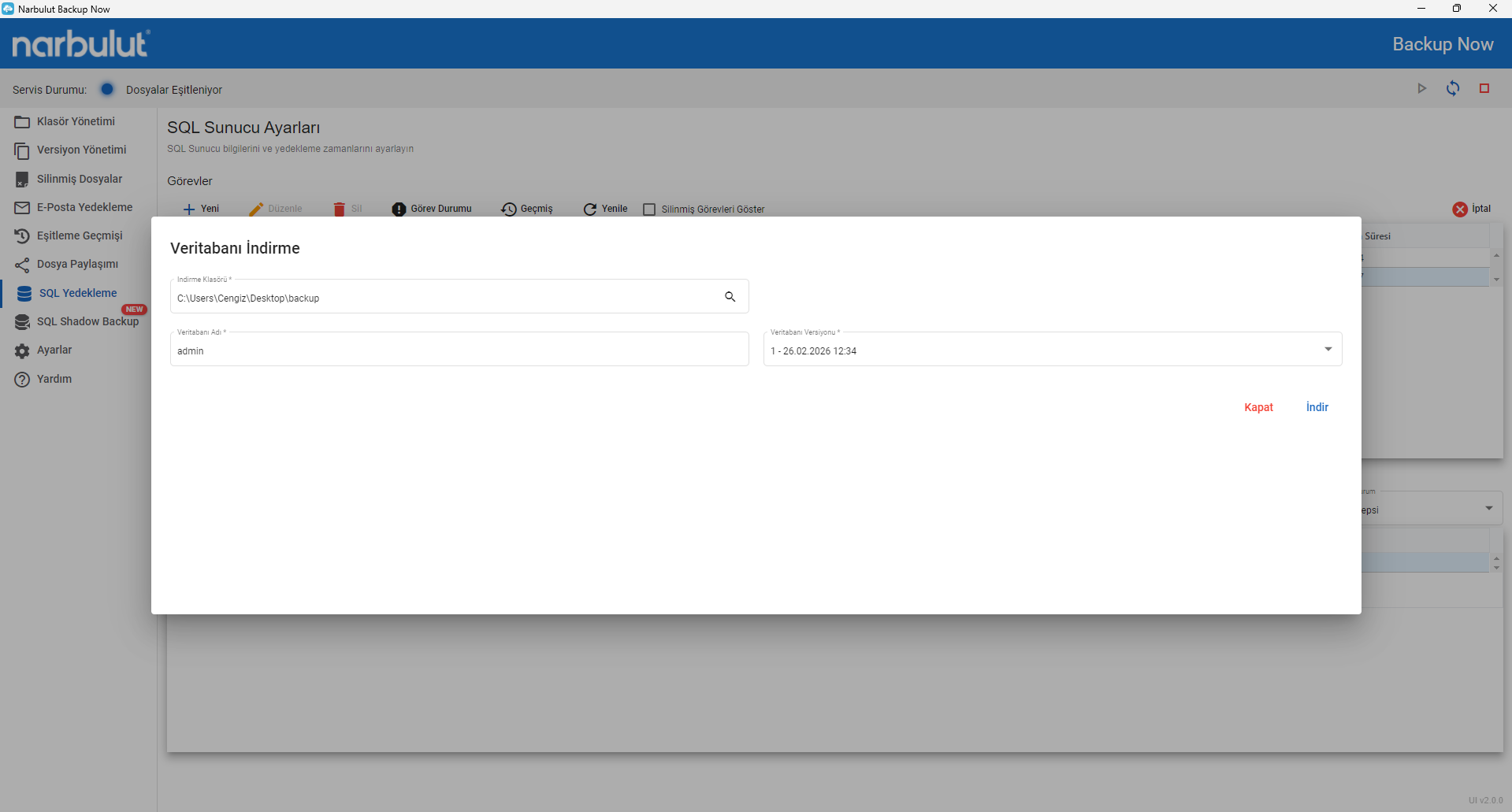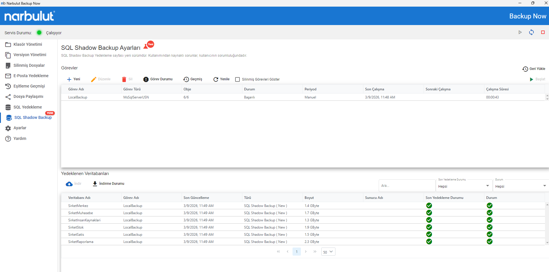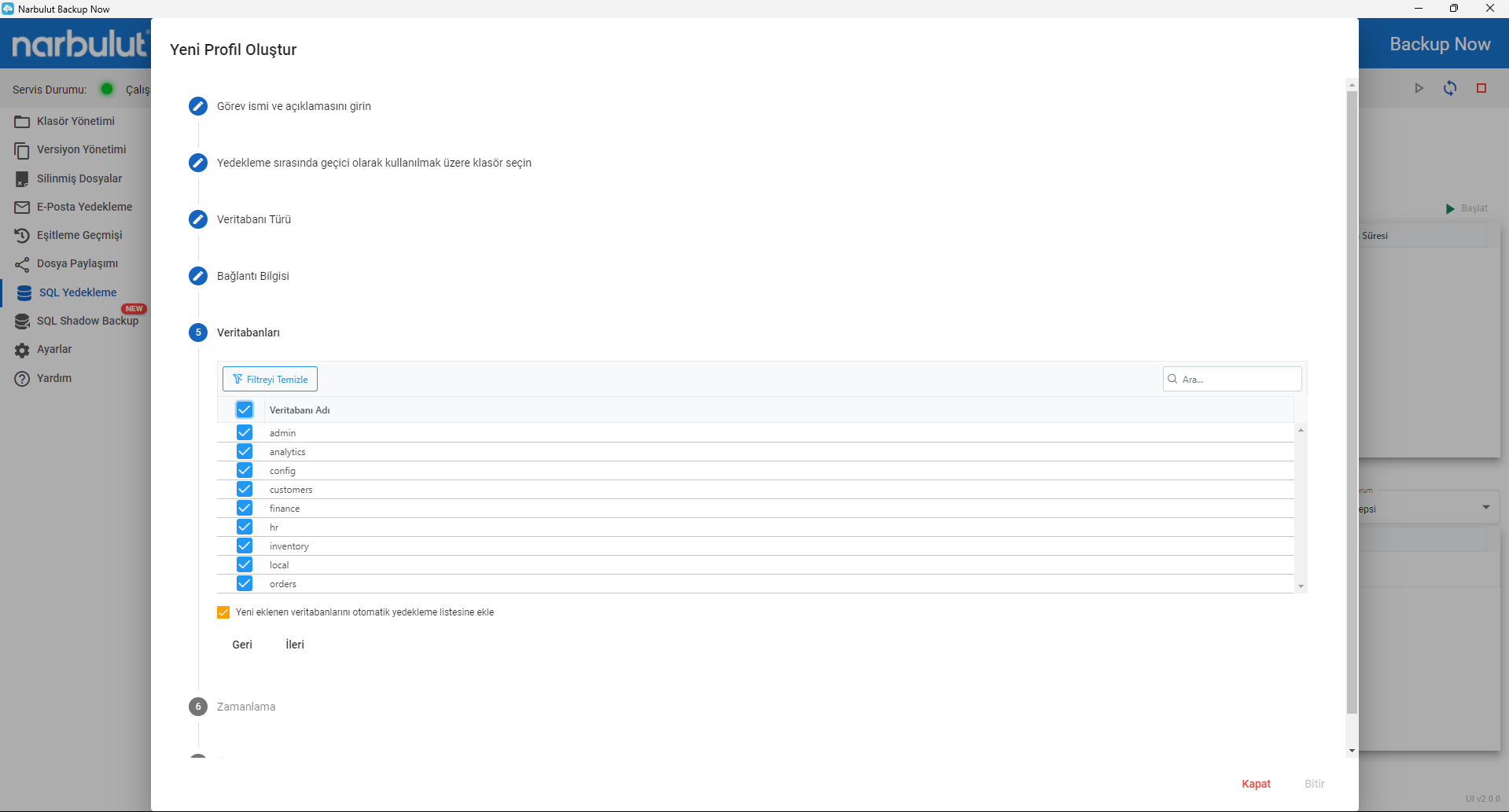 - Seçtiğiniz veritabanlarını Narbulut Backup Now ile kurtarın.