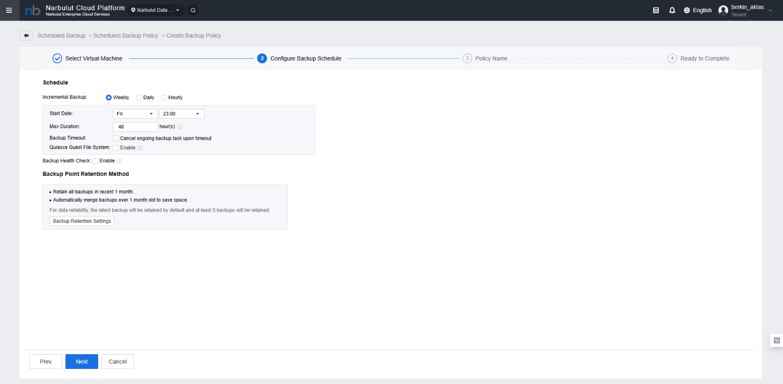 Narbulut Cloud Server Yedekleme Politikası