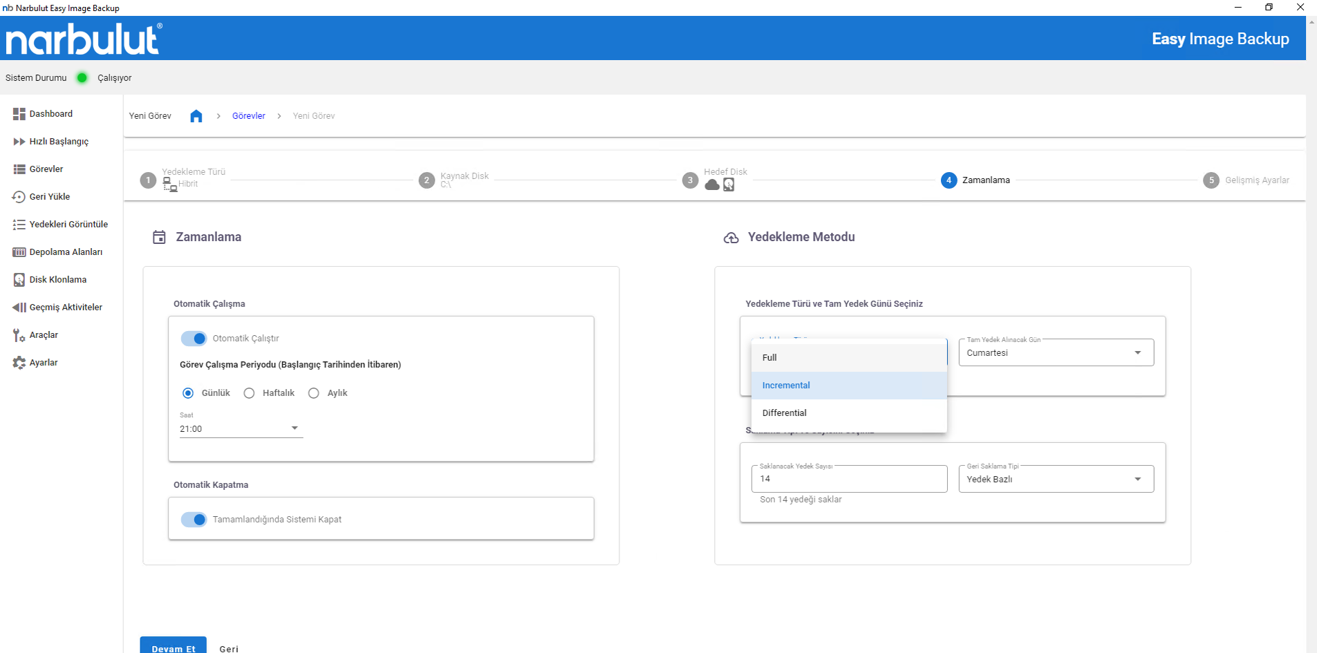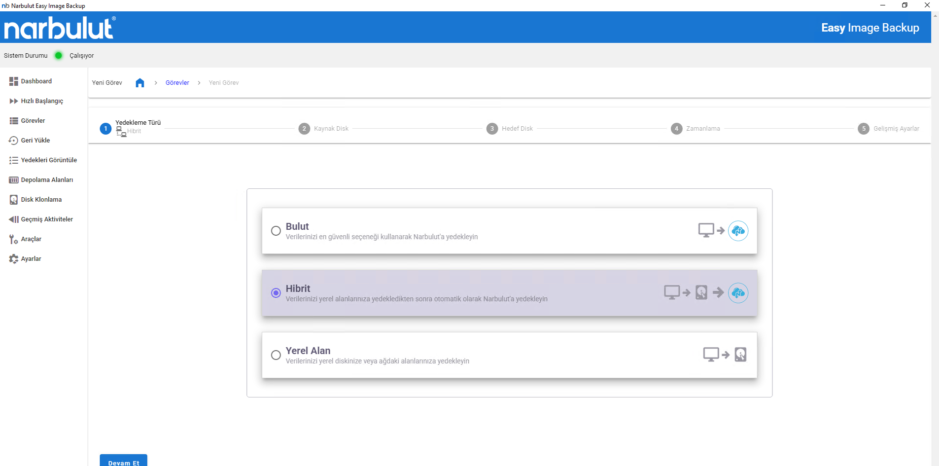 - Bulut depolama alanı olarak Narbulut altyapısını kullanın; tüm imaj yedekleri uçtan uca şifrelenerek güvenle aktarılır.