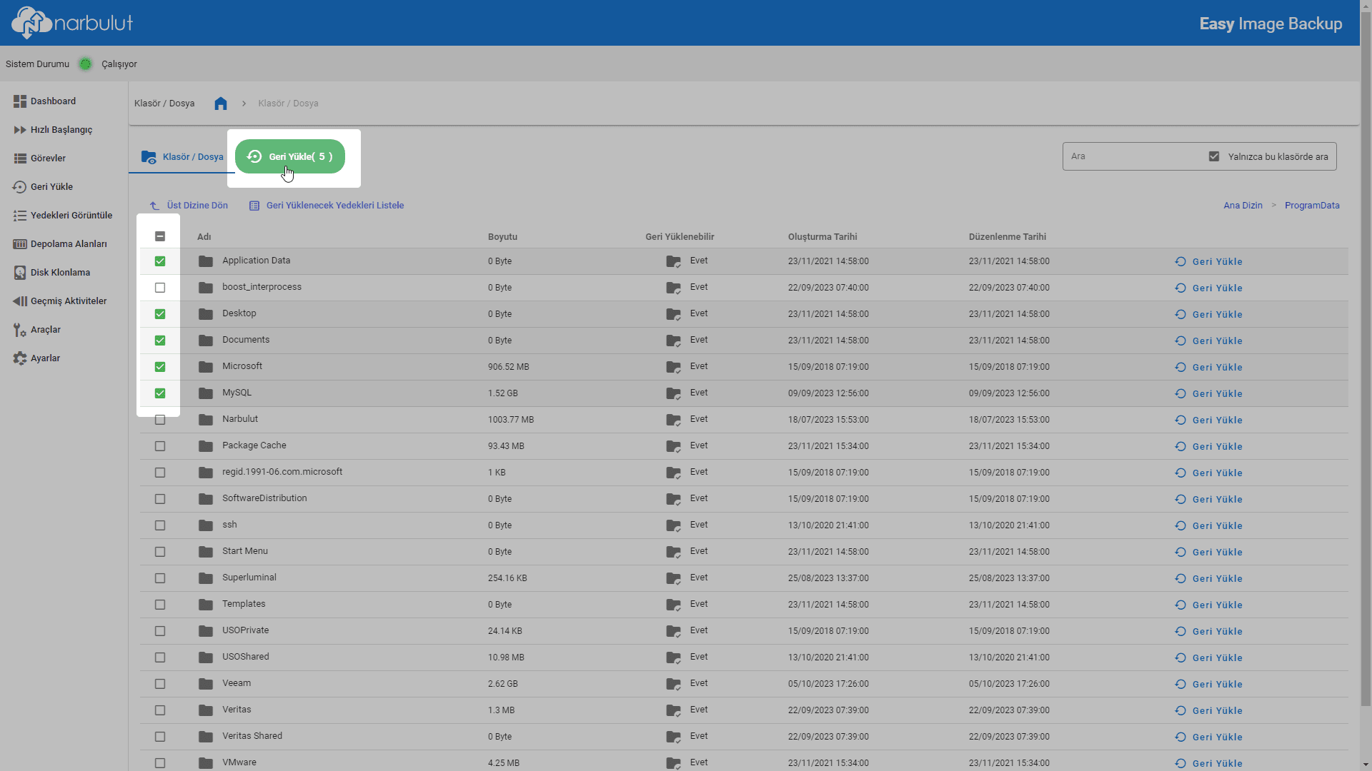 Narbulut Easy Image Backup Uygulaması Üzerinden Klasör/Dosya Bazlı