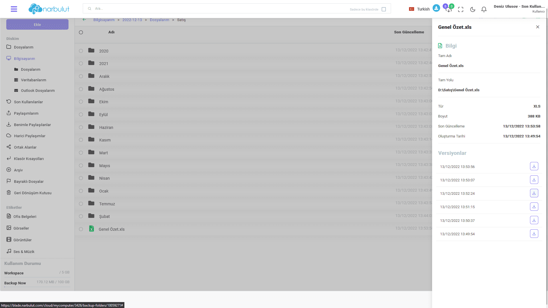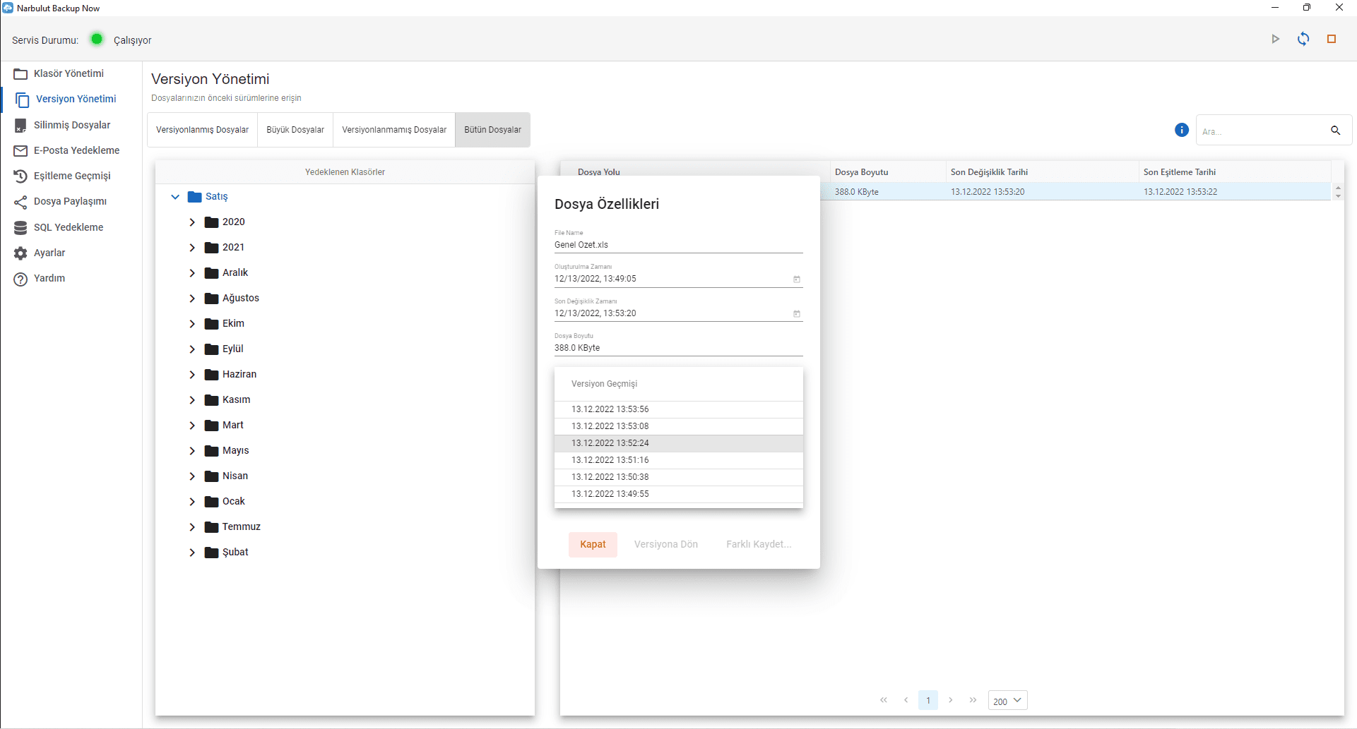 Web panel üzerinden de dosyalarınıza tüm versiyonlarıyla birlikte her yerden erişebilir ve istediğiniz sürümü indirebilirsiniz.